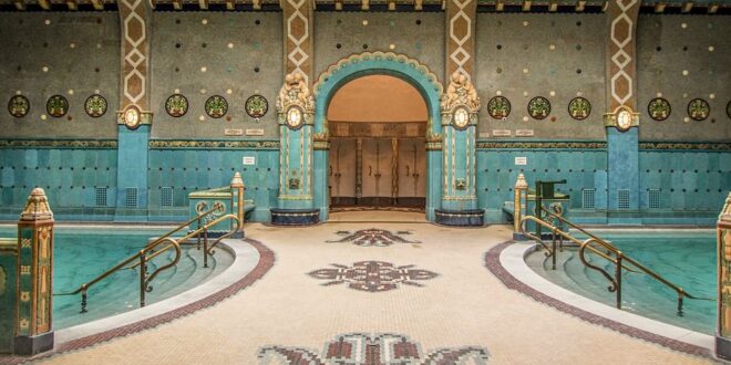 Construits à Budapest entre 1912 et 1918, les bains Gellért mêlent Art nouveau, influences orientales et art populaire hongrois. L’établissement est aussi réputé pour la beauté de ses mosaïques et de ses vitraux que pour la qualité de ses eaux aux vertus thérapeutiques. Un luxe relaxant démocratisé : en Hongrie, l’assurance maladie rembourse à tous ses citoyens deux cures thermales par an.